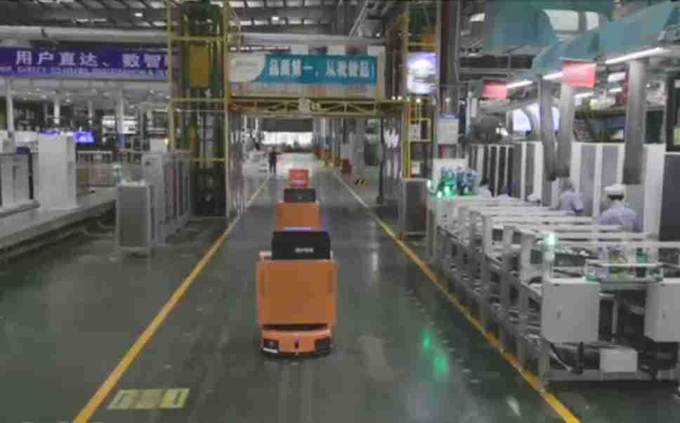 为车载冰箱物流配送打造的智能解决方案,,,,包含产中物流通过潜伏举升AMR搬运至线边,,产后成品物流智能仓储,,流程包含产中物流智能齐套入库,,,,线边安灯叫料AMR智能配送至线边,,,,成品入库、、、、出库,,通过无人堆高车机器人,,,,智能仓储管理替代人工作业管理,,,,实现更高存储、、、、更高效率、、、更具柔性化的解决方案。。。。